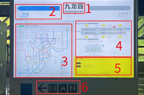 搭乘電梯上到站臺層后,會有一塊超大的指示牌,幫幫助乘客迅速理清自己的位置以及方向。