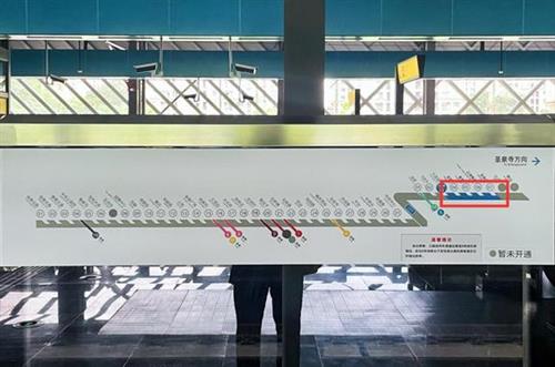 在等車的間隙也可以再仔細看看站臺門上的線路圖,灰色代表列車已經(jīng)經(jīng)過的區(qū)段,藍色代表未到達的區(qū)段(也就是列車行駛的方向)。