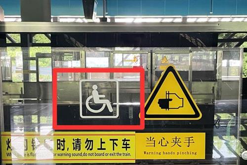 它的真實身份是“無障礙標識”,代表對應(yīng)的車廂內(nèi)設(shè)有輪椅固定器,乘坐輪椅的乘客在這兩道門上車是最方便的!